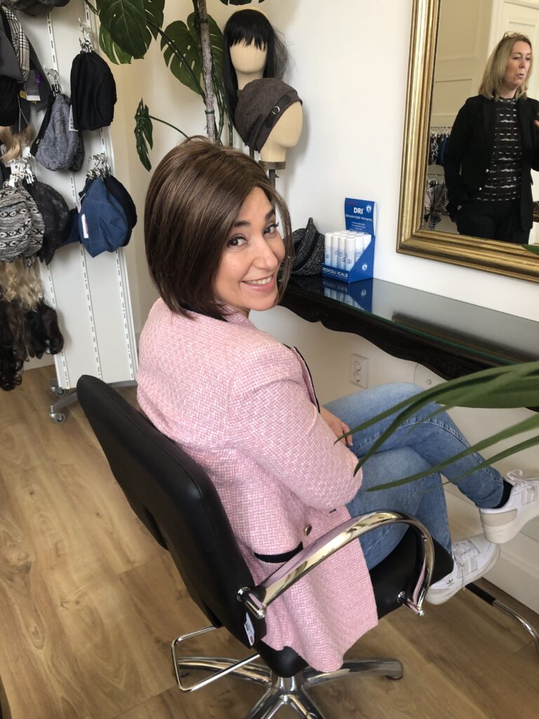Door de behandeling zal er haarverlies zijn. Ik zal een tijdje zonder haar door het leven moeten.. ik zal afscheid moeten nemen van mijn flinke bos haar. Ik heb daar op zich wel vrede mee, maar op bepaalde momenten zal het fijn zijn om toch met wat haar rond te lopen. Om die reden heb ik van de week een aantal pruiken gepast, zie foto. Ik heb een aantal modelletjes gekozen en zal volgende week de knoop doorhakken. Naast een pruik zal ik voornamelijk haarbandjes, mutsen, bandana’s dragen. Eenmaal gewend aan een kaal koppie zal ik ook zonder enige accessoire mezelf vertonen, mits mijn kinderen daar vrede mee hebben.